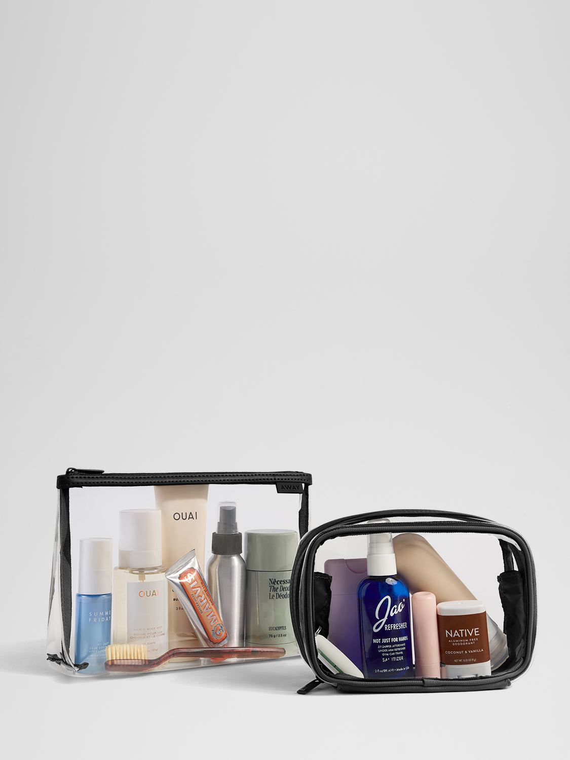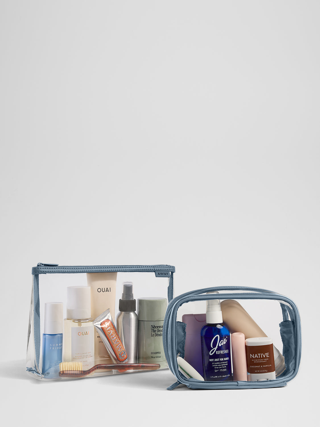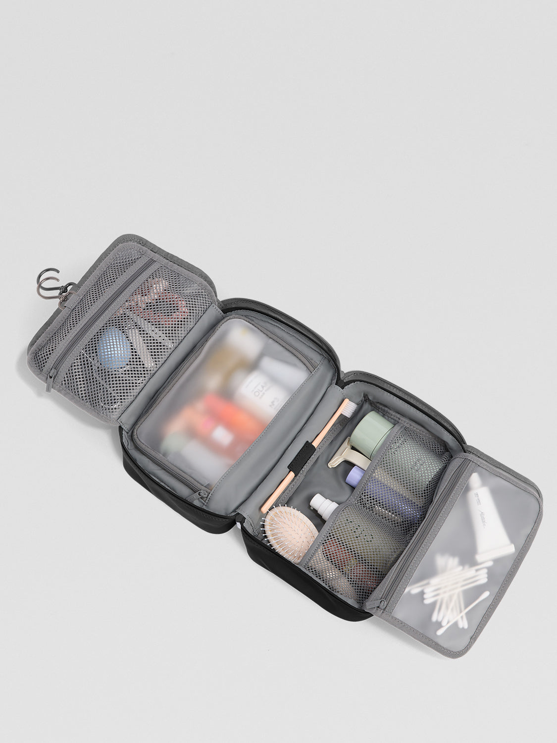 Organize your essentials with water-resistant, spill-proof toiletry bags—easy to pack, easy to access.