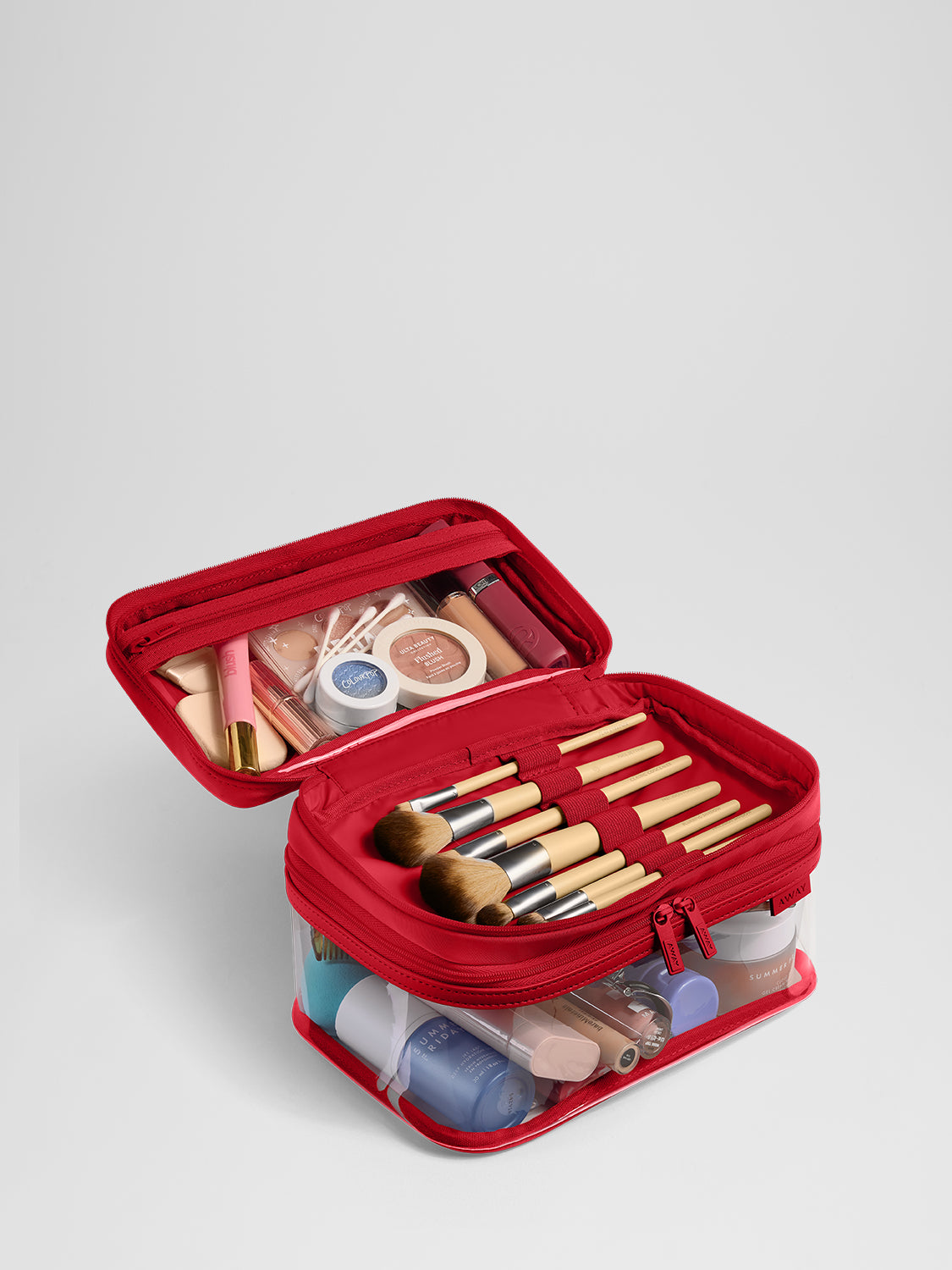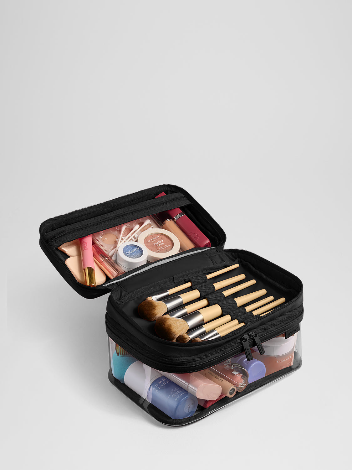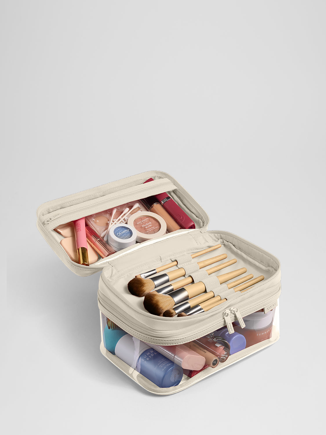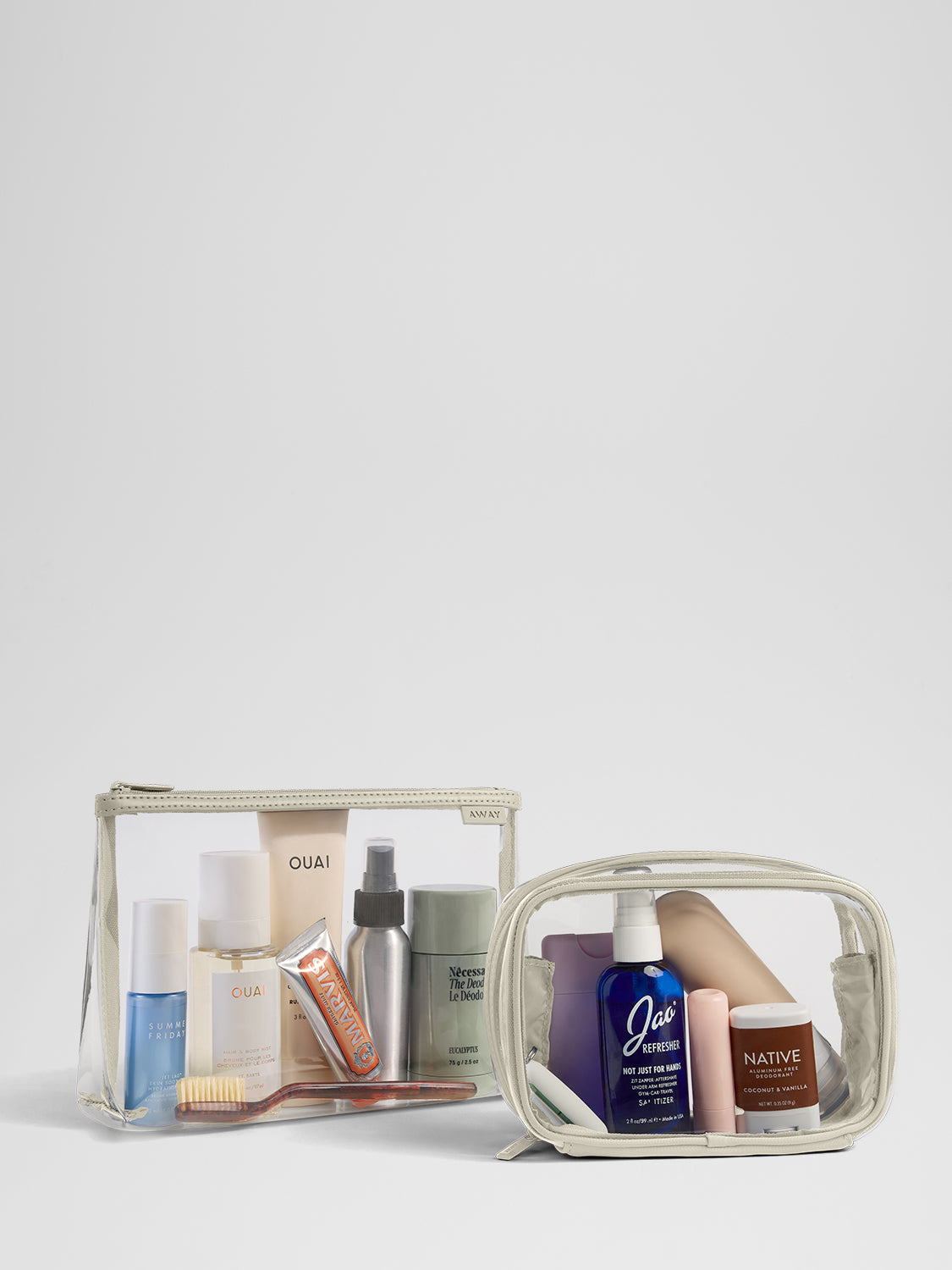 Organize your essentials with water-resistant, spill-proof toiletry bags—easy to pack, easy to access.